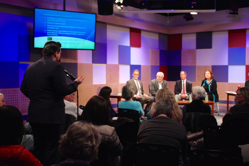Near the end of the discussion the forum was opened to the audience where attendees questioned panelists on a multitude of topics. Concerns the audience addressed included questions on appropriate forms of civil unrest, campaign finance reform, and fake news’ affect on society’s civility.