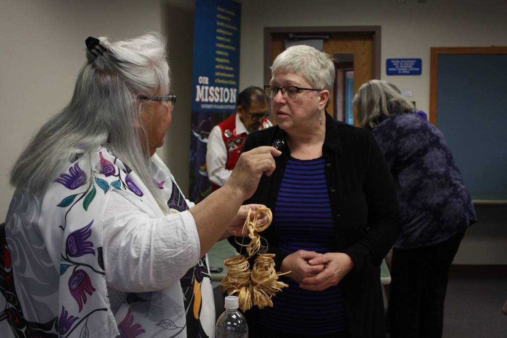 Almost 40 people attended the Feb. 17 event on the Auke Bay Campus. The elder’s demonstrations were followed by a potluck intended to cultivate a sense of fellowship between presenters and attendees.