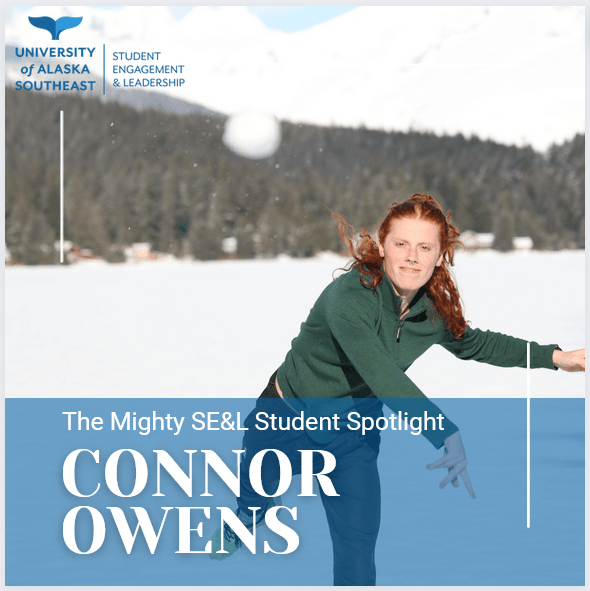 This month’s Mighty SE&L award goes to Connor Owens! Connor is a fourth-year Environmental Science student originally from Palmer, Alaska. He chose UAS because it seemed better than either Anchorage or Fairbanks. Now he can say for sure he thinks Juneau is better.