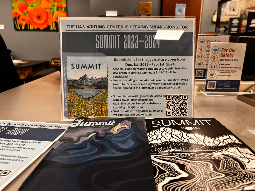 The UAS Writing Center will accept submissions to Summit: University of Alaska Southeast’s Collection of Exceptional Academic Works until. Feb. 1.