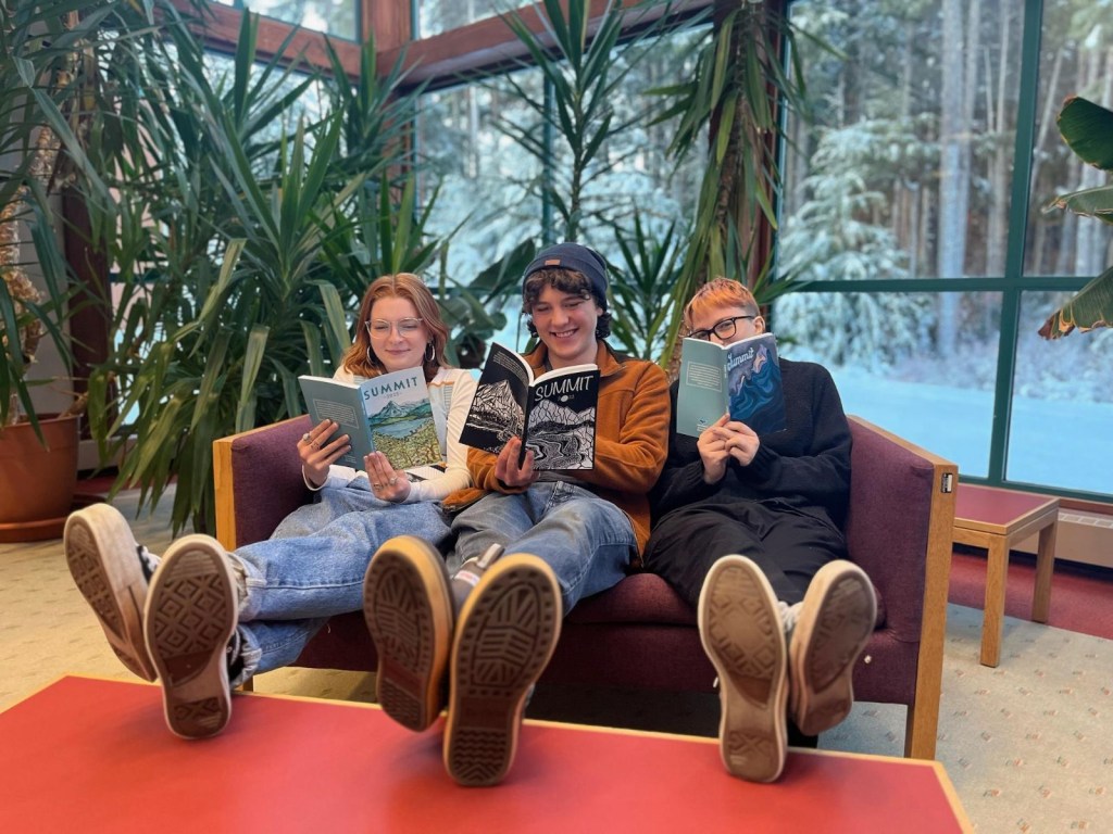 The cover of every Summit publication is an original design by UAS Students and Writing Center tutors, such as last year’s cover, designed by Daanaa Keet Casey Lee Moats and former Writing Center Tutor Autumn Daigle. Every cover has a different style, but all feature the motif of a mountain peak.