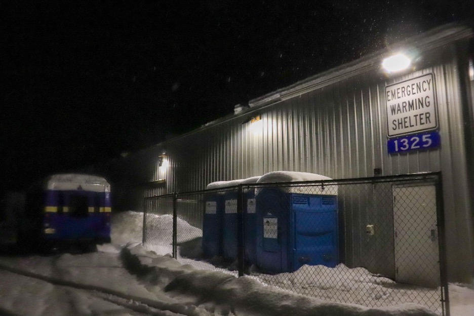 Juneau’s homeless crowded against warehouse walls, waited in long lines to use porta-potties, and held their dogs close to stay warm during the city’s “snowpocalypse.”