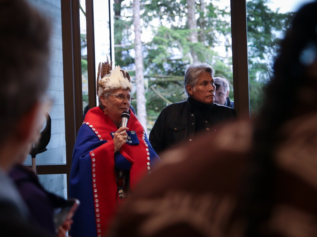 At the building’s grand opening, Áakʼw Ḵwáan tribal spokesperson Seikoonie Fran Houston noted that her ancestors were the first to settle in the Auke Bay area of the Juneau region.