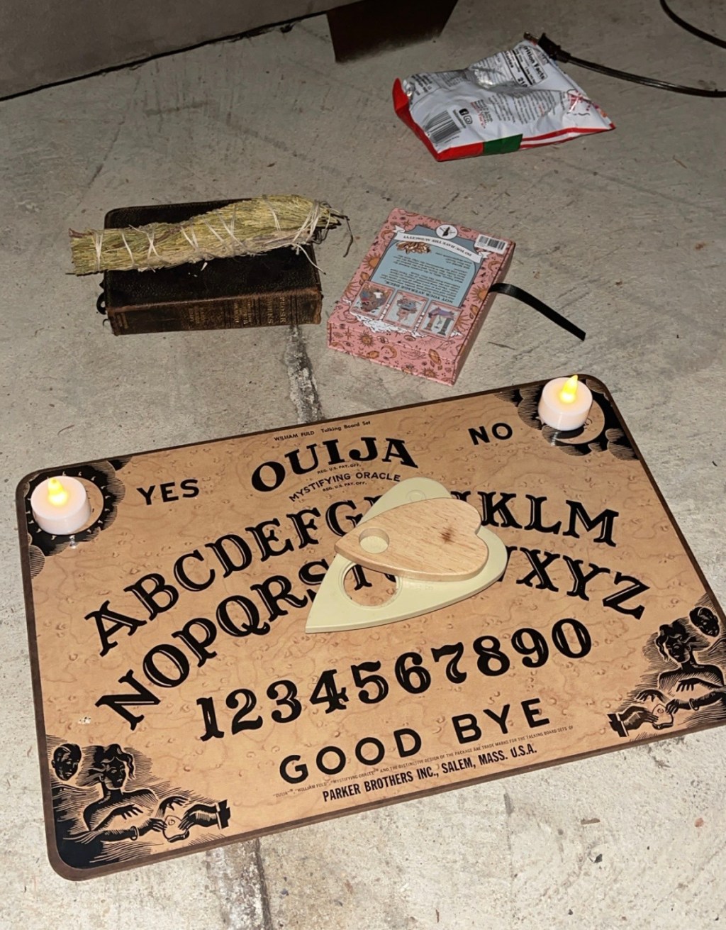 Ouija board setup, photo taken by Emily Grab